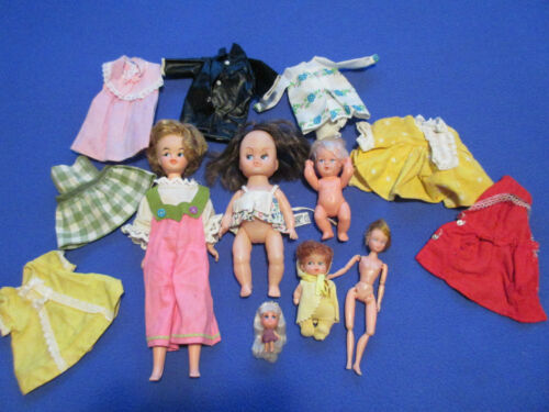 Title (ebay affiliate link): Lot of 6 varied dolls -1960s ~ 70s - Kiddie, Rubber, hard plastic - misc clothes