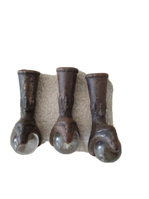 Vintage Metal Glass Ball Eagle Claw Table Leg Ends