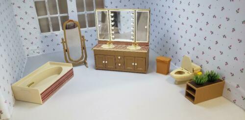 VINTAGE TOMY DOLLHOUSE FURNITURE BATHROOM ROOM 6 PIECE SET