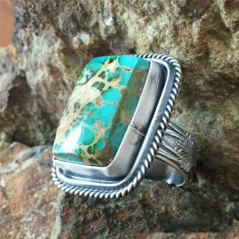 Title (ebay affiliate link): Antique Silver Natural Turquoise Gemstone feather Wedding Jewelry Ring Size 9
