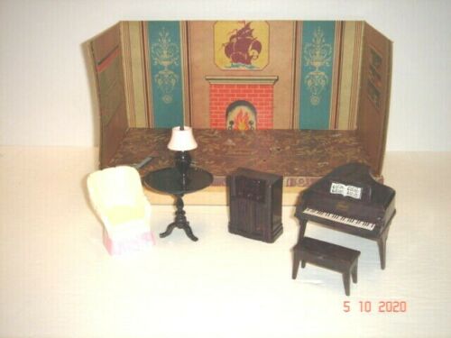 Title (ebay affiliate link): 1950''s Ideal Music Room Dollhouse Furniture With Backdrop and Original Box