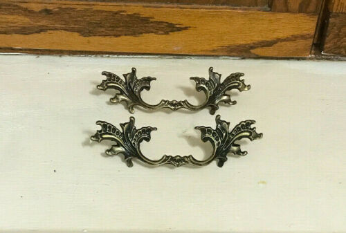 Vintage French Provincial Ornate Drawer Pulls Furniture Brass Handles TWO