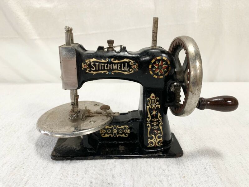 Title (ebay affiliate link): Antique Cast Iron Miniature National Stitchwell Childs Toy Hand Sewing Machine