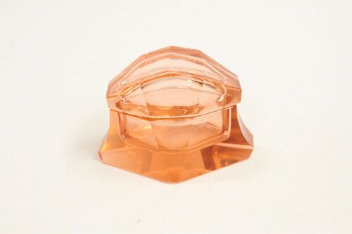 Title (ebay affiliate link): Art Deco Moser Cubist Faucetted Rose Color Art Glass Lidded Dresser Jar