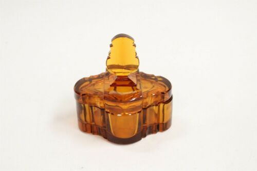 Art Deco Moser Amber Cubist Geometric Lidded Art Glass Dresser Jar