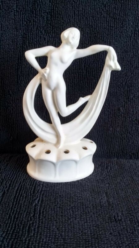 Title (ebay affiliate link): Vintage Art Deco White Flower Frog Nude Woman Dancing with Scarf 7 3/4" 10076/2
