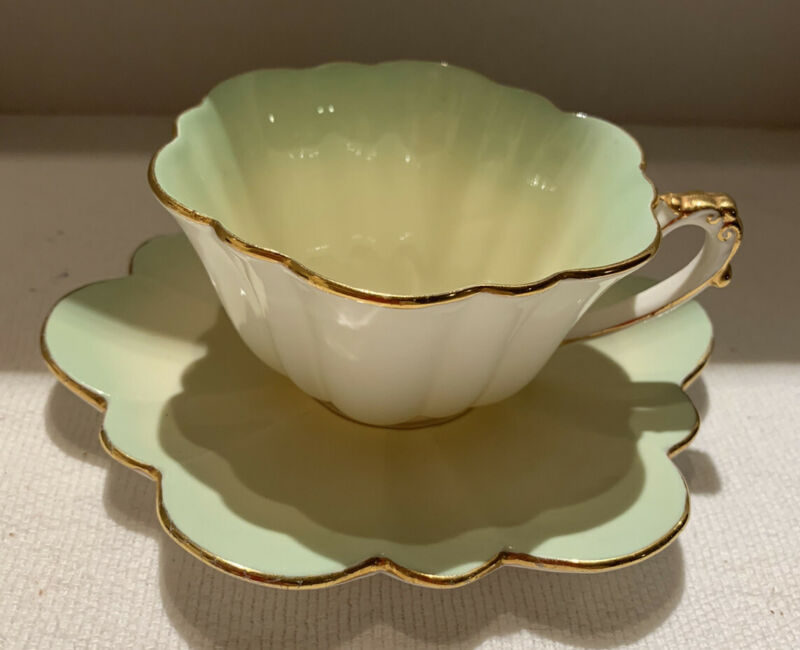 Vintage Folley Mint Green Tea Cup And Saucer Gold Trim