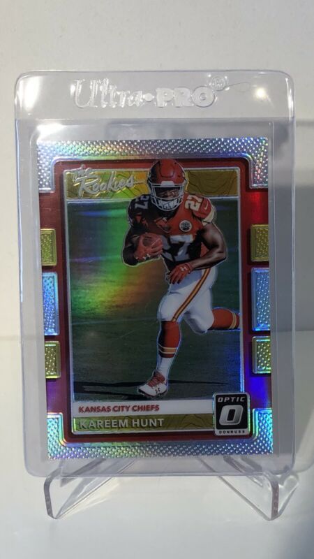 Title (ebay affiliate link): 2017 Panini Donruss Optic #23 Kareem Hunt RC The Rockies Silver Prizm/Browns