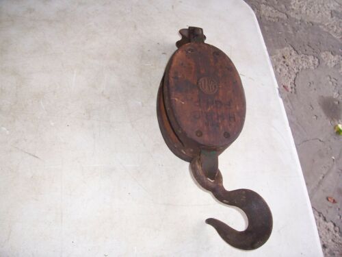 Title (ebay affiliate link): Vintage U-W Block And Tackle Pulley Antique Steel Hook Marine Barn