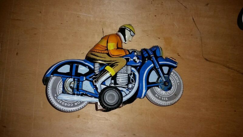 Title (ebay affiliate link): TIN LITHO 6.25" Friction Toy MOTORCYCLE RACER Hungary EN-12-63 Used & Working