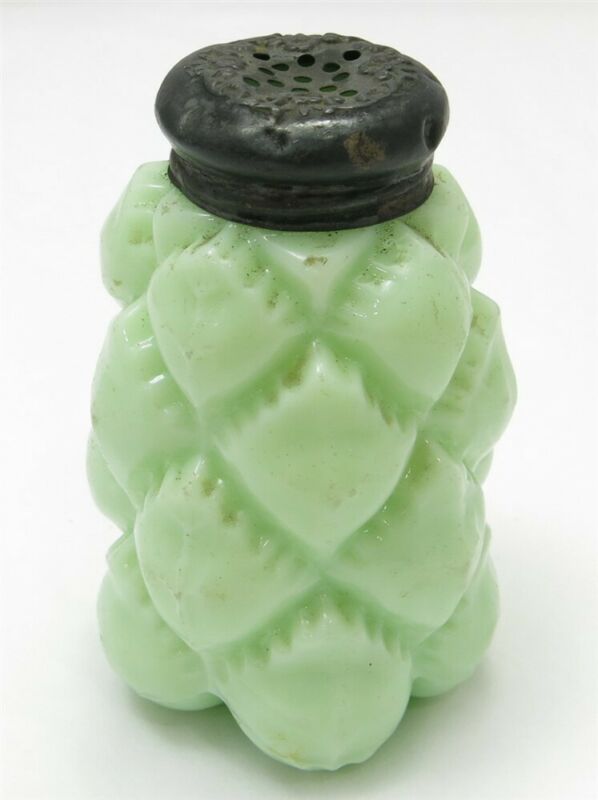 Title (ebay affiliate link): Antque EAPG Opaque Light Green Cased Milk Glass Puffy Quilted Salt Pepper Shaker