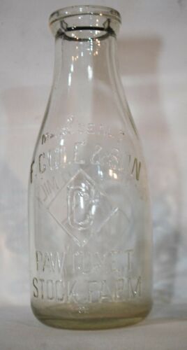 Vintage COLE & SON Dairy Milk Glass Bottle PAWTUXET STOCK FARM RI NE EMBOSSED