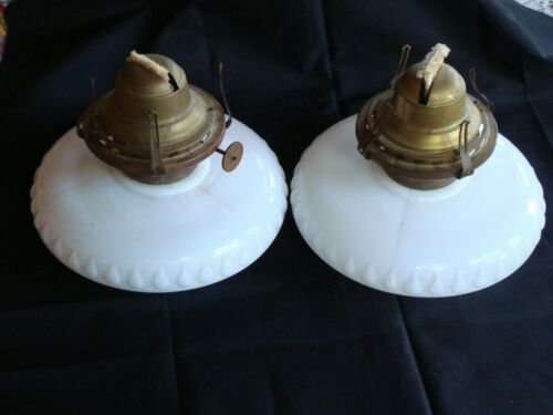 Vintage Milk Glass Kerosene Oil Lamps Pair No Shades