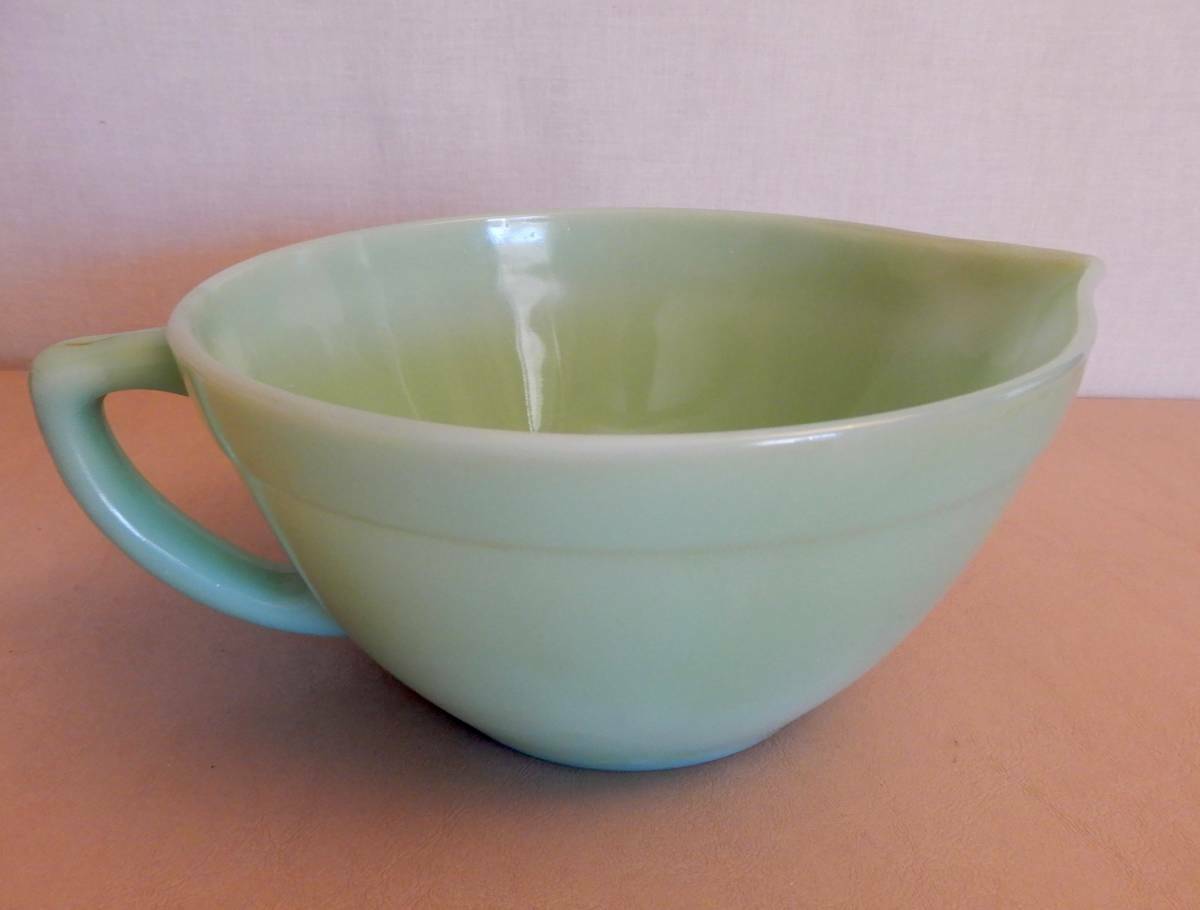 Vintage FIRE KING JADEITE Batter Mixing Bowl Handle Milk Glass Made in USA MCM