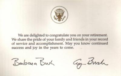 ORIGINAL PRESIDENTIAL RETIREMENT GREETINGS -George Bush