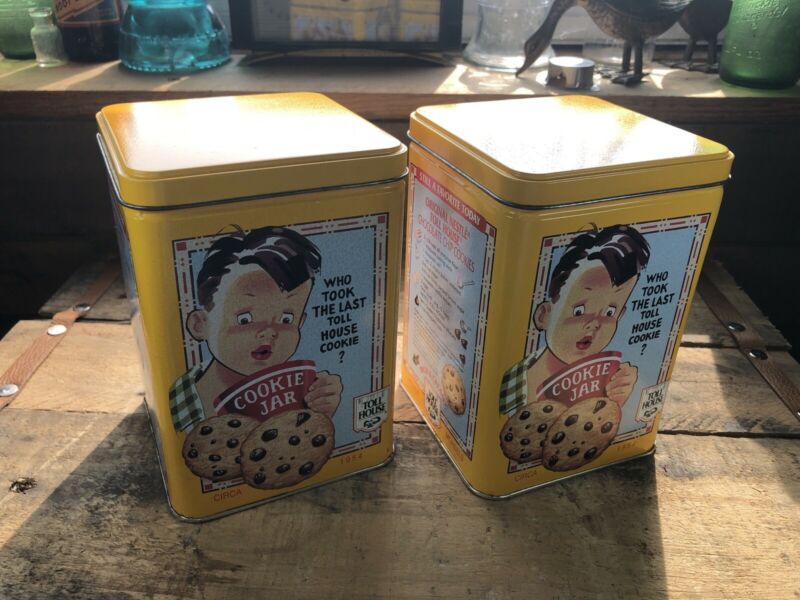 Title (ebay affiliate link): Pair Of Vintage Nestle Toll House Chocolate Morsels Cookies Tins - Yellow