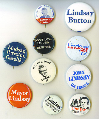 Title (ebay affiliate link): 10 Campaign Pinbacks John Lindsay NY Mayor U.S. Senate