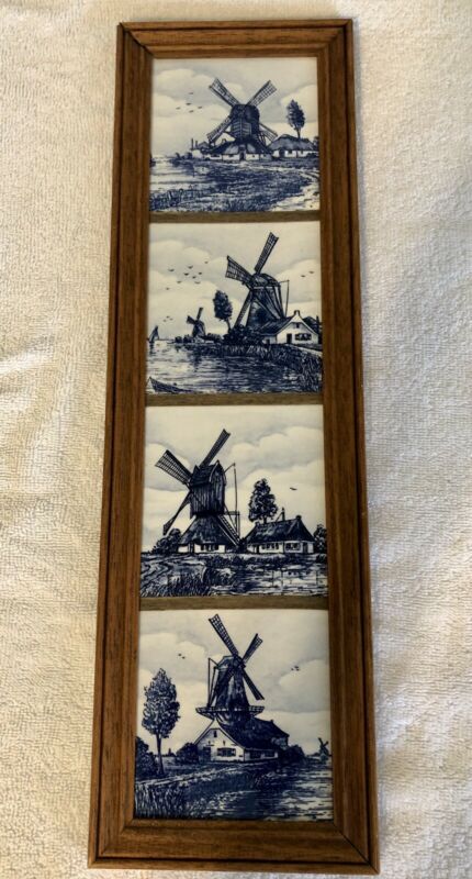 Title (ebay affiliate link): Holland Delft Blue 4 Tiles Windmill Scenes Wall Hanging Hand Painted