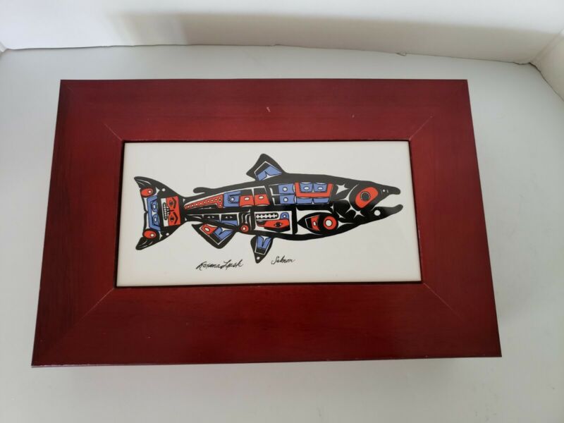 Title (ebay affiliate link): VINTAGE WOODEN BOX WITH PAINTED TILE ON LID "SALMON" Signed Roxana Leask