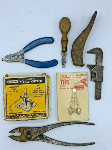 Title (ebay affiliate link): Mixed Antique Tool Lot- General circle cutter, soldering tip, plier, screwdriver