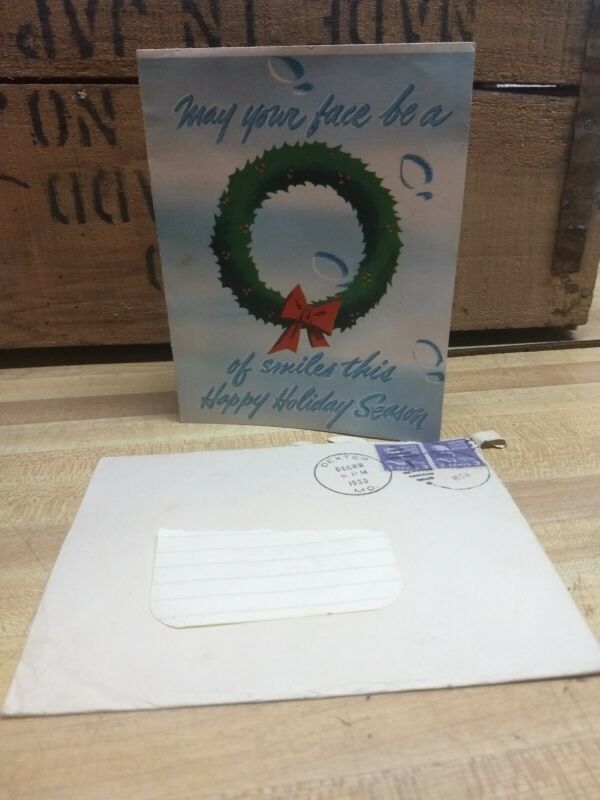 Title (ebay affiliate link): 1950 Buick Dealership Christmas Card, Sneed & Hall Motor Company, Dexter, MO.