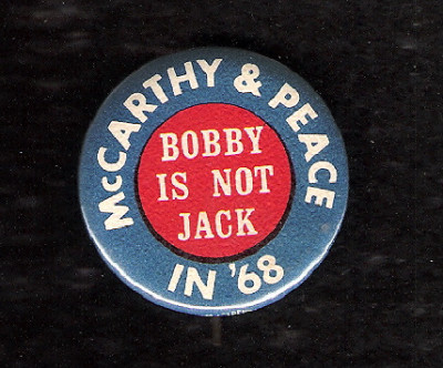 Title (ebay affiliate link): pro MCCARTHY, anti RFK 1968 button BOBBY is not JACK