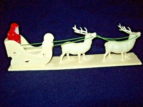 Title (ebay affiliate link): Antique Santa Claus Paper Mache, Pulp Sleigh, (5) Celluloid Reindeer On Wood
