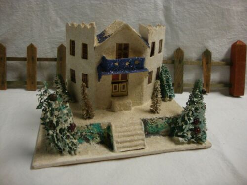 VINTAGE MANSION HOUSE CARDBOARD CHRISTMAS VILLAGE SPONGE TREES MERCURY JAPAN