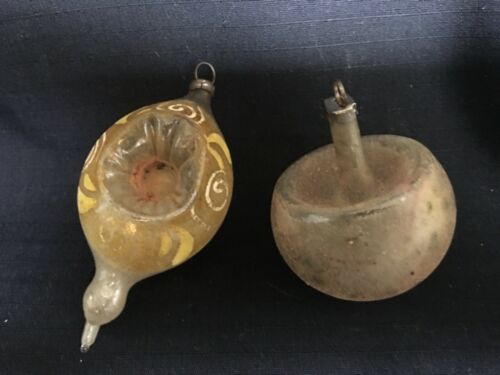 Lot of 2 Early Vintage Antique Glass Christmas Tree Ornaments