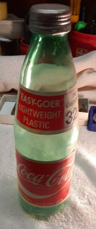 Title (ebay affiliate link): RARE vintage 1970s 1st Generation PLASTIC easy-goer bottle MONSANTO 32 OZ COKE