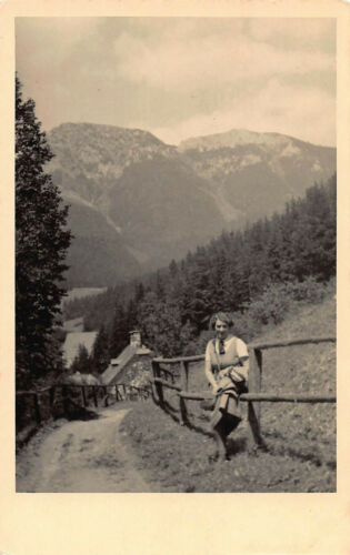 Vintage RPPC European Mountain Hills Lady Portrait Country Lane Photo Postcard