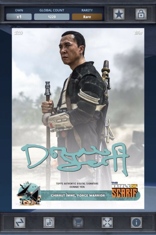 Title (ebay affiliate link): DIGITAL Star Wars Card Trader CHIRRUT IMWE Rare BATTLE OF SCARIF Teal Signature!