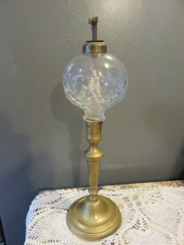 ANTIQUE VICTORIAN PEG WHALE OIL LAMP MOLD BLOWN EAPG SANDWICH BOSTON BRASS BASE