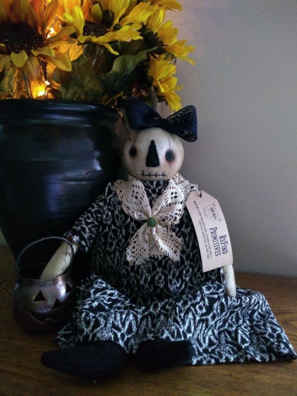 Title (ebay affiliate link): ReFind Primitives Halloween/Fall Pumpkin Doll w Real Stem-Black Dress, Pumpkin