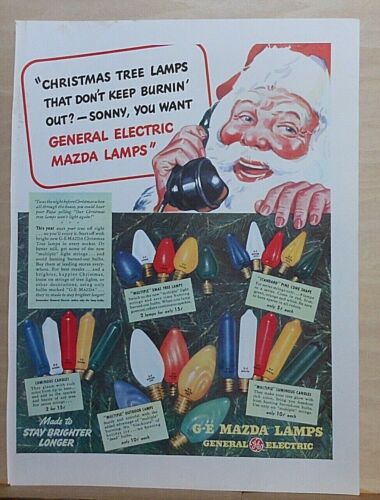 Title (ebay affiliate link): 1941 magazine ad for General Electric Mazda Christmas tree lamps - Santa Calls