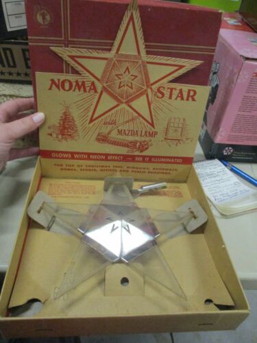 Title (ebay affiliate link): 1930s Noma Lighted Metal AND GLASS Christmas Tree Star Topper In ORIGIONAL Box
