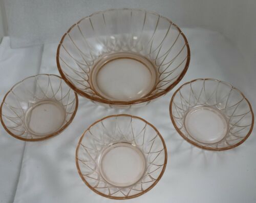 Title (ebay affiliate link): Hazel Atlas Newport (Hairpin) Pink 8" Bowl & Three Berry Bowls