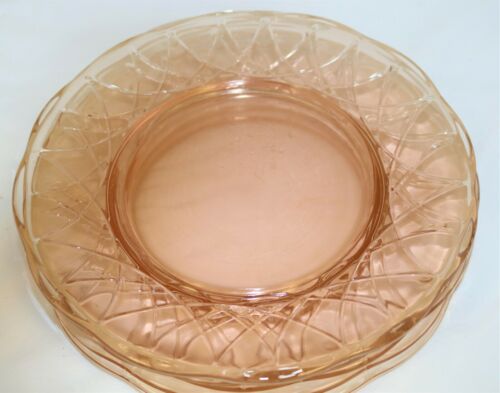 Title (ebay affiliate link): Hazel Atlas Newport (Hairpin) Pink Set of Five 8.75" Plates