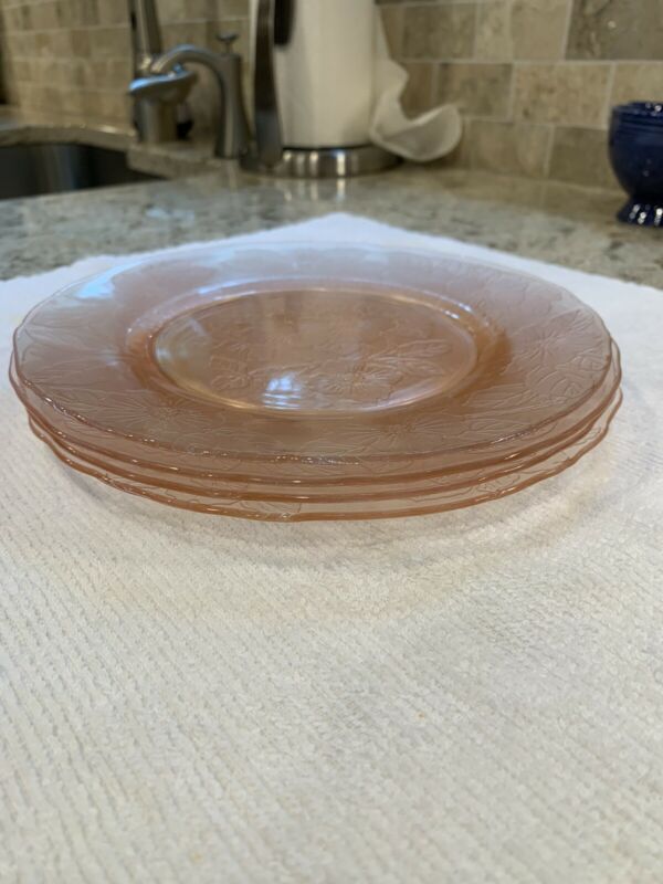 Title (ebay affiliate link): 4 Vintage MacBeth-Evans Dogwood Pink Depression Glass Floral Luncheon Plate 8"