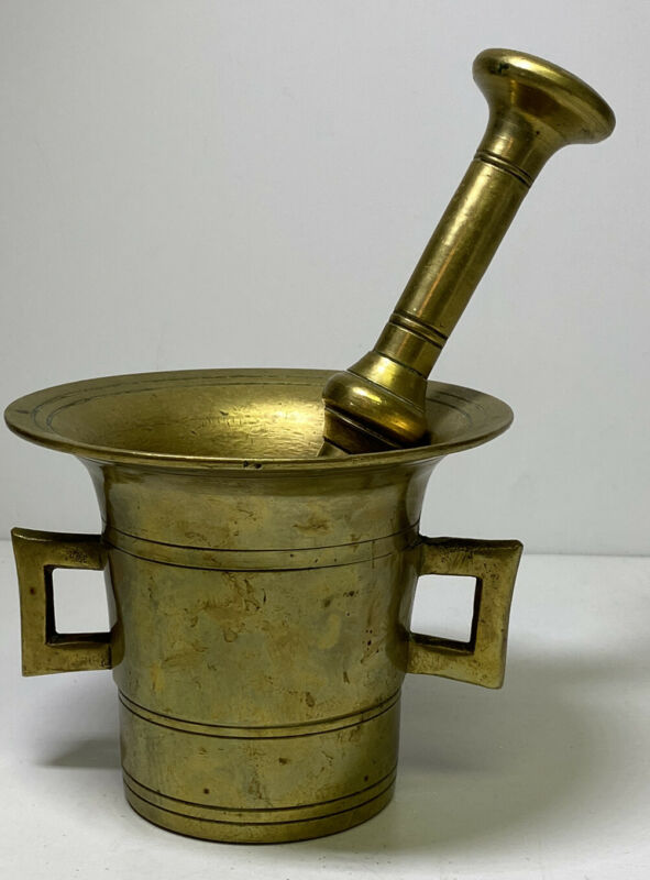 Title (ebay affiliate link): Antique Mortar & Pestle Heavy Brass Pharmacy Chemistry Equipment 4-Inch