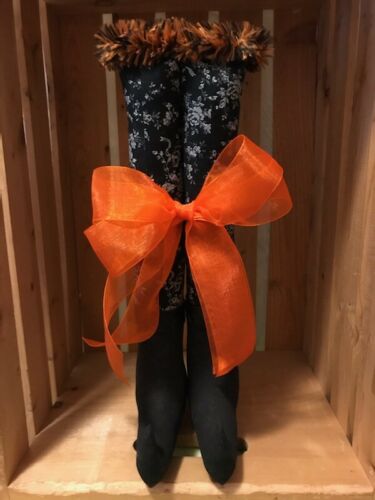 Title (ebay affiliate link): Primitive Halloween Witch Boots Standing Black Orange Bow Handmade