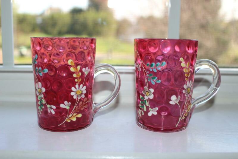 Title (ebay affiliate link): Stunning Pair of Cranberry Victorian Blown Enamel Decorated Drinking Glasses