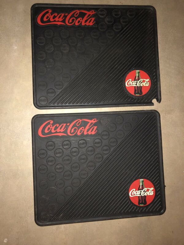 Pair of Coca Cola Solid Rubber Floor Mats 1 Mat Has Small Rip In The Corner