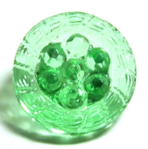VINTAGE 1930''S GREEN DEPRESSION GLASS BUTTON w/FACETED DOT POSY CENTER