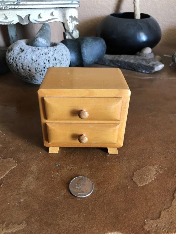 Title (ebay affiliate link): Vintage Miniature Wooden Chest Two Drawers Salesman Sampler Doll Chest Nice!