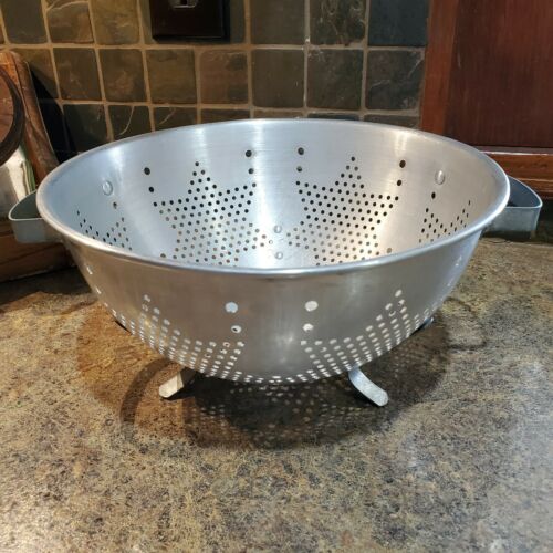 Title (ebay affiliate link): Vintage Star Pattern Aluminum Footed Colander Strainer 9" D Primitive Americana