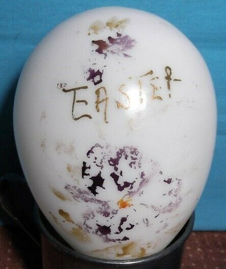 Victorian Blown Milk Glass Easter Egg Painted Lavender Floral Flower Bouquet
