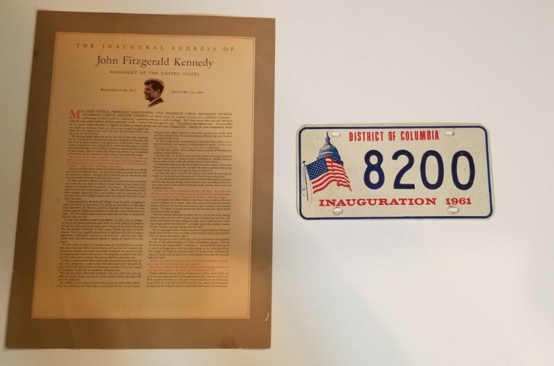JFK inaugural address and license plate