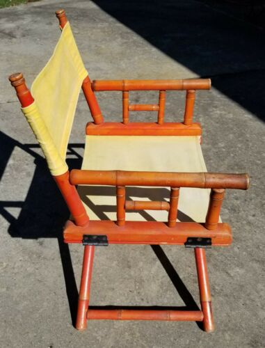 Title (ebay affiliate link): Vintage Faux Bamboo Directors Chair Telescope Folding Furniture Co Wood Canvas