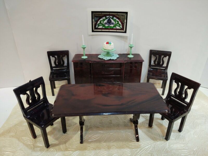 Title (ebay affiliate link): Plasco DINING ROOM w/ Jadite CHRYSNBON KIT Vintage Miniature Dollhouse Furniture